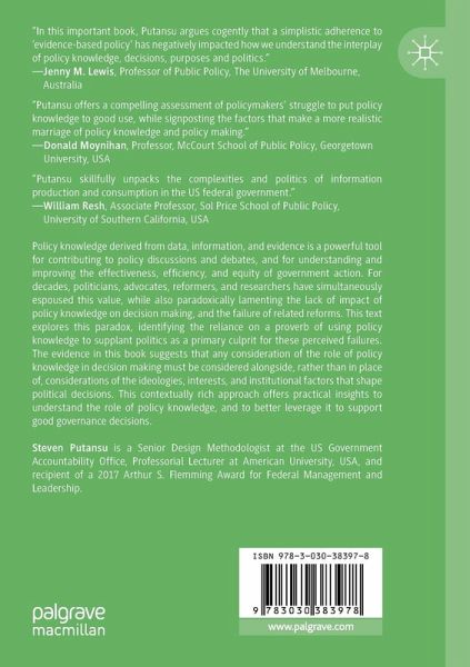 Policy knowledge derived from data, information, and evidence is a powerful tool for contributing to policy discussions and debates, and for understanding and improving the effectiveness, efficiency, and equity of government action. For decades, politicians, advocates, reformers, and researchers have simultaneously espoused this value, while also paradoxically lamenting the lack of impact of policy knowledge on decision making, and the failure of related reforms. This text explores this paradox, identifying the reliance on a proverb of using policy knowledge to supplant politics as a primary culprit for these perceived failures. The evidence in this book suggests that any consideration of the role of policy knowledge in decision making must be considered alongside, rather than in place of, considerations of the ideologies, interests, and institutional factors that shape political decisions. This contextually rich approach offers practical insights to understand the role of policy knowledge, and to better leverage it to support good governance decisions.