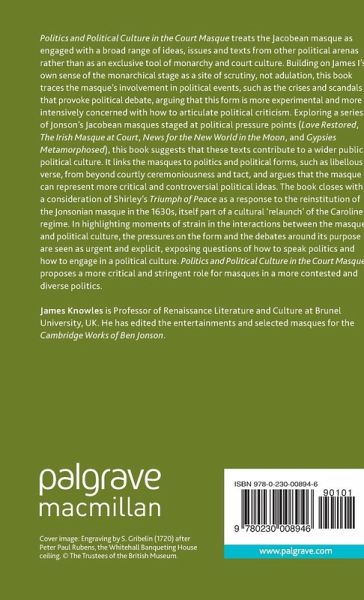 "This interesting study explores the political culture of the Jacobean and Caroline masques and their relationship to the articulation of political criticism. ... Knowles's book will appeal to those interested in early modern English literature and culture. Summing Up: Recommended. Upper-division undergraduates through faculty." (C. S. Cox, Choice, Vol. 53 (8), April, 2016)