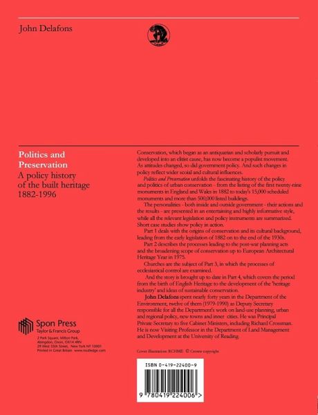 This book traces the policy history of urban conservation and its relationship to the town planning process and both are set in their political context. Part One deals with the origins of conservation and its cultural background. Part Two deals with the post-war legislation and the increasing scope of conservation. Part Three deals with churches and their separate control system, and Part Four brings the story up to the present time. New issues such as sustainable conservation and the latest government policy are addressed in the conclusion. This book will aid current practice and help to inform future directions.
