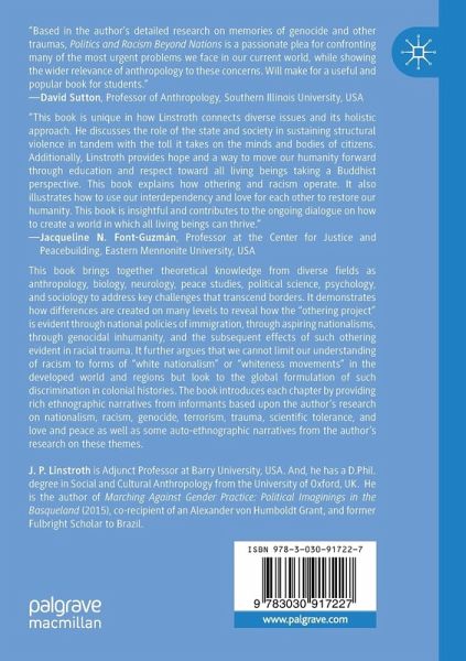 This book brings together theoretical knowledge from diverse fields as anthropology, biology, neurology, peace studies, political science, psychology, and sociology to address key challenges that transcend borders. It demonstrates how differences are created on many levels to reveal how the "othering project" is evident through national policies of immigration, through aspiring nationalisms, through genocidal inhumanity, and the subsequent effects of such othering evident in racial trauma. It further argues that we cannot limit our understanding of racism to forms of "white nationalism" or "whiteness movements" in the developed world and regions but look to the global formulation of such discrimination in colonial histories. The book introduces each chapter by providing rich ethnographic narratives from informants based upon the author's research on nationalism, racism, genocide, terrorism, trauma, scientific tolerance, and love and peace as well as some auto-ethnographic narratives from the author's research on these themes.