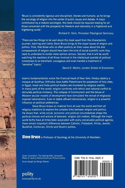 Islamic fundamentalists wreck the financial heart of New York; Hindus destroy a mosque at Ayodhya; Orthodox Jews battle Palestinians for possession of holy sites; in Egypt, Israel and India political leaders are murdered by religious zealots. In many parts of the world, religion combines with ethnic and national conflict to stimulate political militancy. The collapse of Communism and the failure of Western secular models of development have stimulated the revival of religiously inspired nationalisms. Even in stable affluent democracies, religion is a powerful influence on political preferences. It affects lifestyle concerns such as abortion, gender roles and gay rights. It influences economic attitudes. It shapes the alignments of political parties. Believers try to influence governments and, although most governments in principle tolerate religious diversity, many still attempt to regulate religious behaviour, particularly that of new religious movements. Steve Bruce draws on material from all over the world and from all religious traditions to explore the complex links between religion and politics. He shows that, while social, economic and political circumstances shape the political choices and actions of believers, religion still matters. Although the major world faiths have at times been associated with every conceivable political agenda, there remain important differences between Catholic, Protestant, Hindu, Jewish, Buddhist, Confucian, Shinto and Muslim politics.