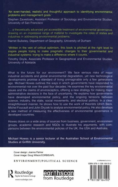 'An evenhanded, realistic and thoughtful approach to identifying environmental problems and management goals' Stephen Zavestoski, Assistant Professor of Sociology and Environmental Studies, University of San Francisco '...a theoretically advanced yet accessible treatment of environmental governance, drawing on an impressive range of material to investigate the roles of states and industries in addressing environmental problems.' Harriet Bulkeley, Department of Geography, University of Durham 'Written in the vein of critical optimism, this book is pitched at the right level to inspire people trying to make pragmatic changes to their governmental and industrial systems: trying to make a difference where it counts.' Timothy Doyle, Associate Professor in Geographical and Environmental Studies, University of Adelaide What is the future for our environment? We face serious risks of major industrial accidents and global environmental degradation, yet new technological developments promise a standard of living unimaginable only a few generations ago. Michael Howes outlines the ways in which governments have responded to environmental risk over the past four decades. He examines the key environmental issues and the claims of envirosceptics, offering a new strategy for making major administrative decisions in the face of uncertainty. He explains how governments have developed environmental policy, and the ongoing tensions between science, industry, the state, social movements, and electoral politics. In a clear, straightforward manner, he shows how to use the work of theorists Ulrich Beck, Michel Foucault and John Dryzek to analyse environmental policy. He also develops a new method of measuring the effectiveness of environmental governance in developed countries. Howes draws on a wide array of sources from business, government, environment groups, academic research, and NGOs to illustrate his arguments, with comparisons between the environmental policies of the UK, the USA and Australia.