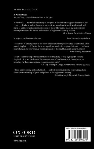 The author presents a new picture of political life in mid-eighteenth century Britain, a period of history which is poorly understood. Written in a clear, accessible style, and drawing on much original material, this book argues that British politics and political culture in the mid eighteenth century have often been poorly understood through over-emphasis on 'stability'. Using a thematic approach, it reconstructs a political world in which vital issues continued to exercise the minds and emotions of those who made up the contemporary 'political nation', a group which included far more than the handful of politicans who competed for national political office. This is a book which interprets its subject broadly, and which seeks to tell the stories of politics in this period through the words and projects, hopes and fears, of contemporaries . It also represents an important contribution to the difficult, but important, project of writing the history of the British Isles. Development in Scotland and Ireland are given careful attention along with those of England.