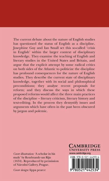 The current debate about the nature of English studies has questioned the status of English as a discipline. In this 1993 book, Josephine Guy and Ian Small set this so-called 'crisis in English' within the larger context of disciplinary knowledge. They examine the teaching of English and literary studies in the United States and Britain, and argue that the explicit attempt by some radical critics on both sides of the Atlantic to politicise the discipline has profound consequences for the nature of English studies. They describe the state of disciplinary knowledge, together with its social and philosophical preconditions; they analyse proposals for reform; and they discuss the ways in which these proposed reforms would affect the three main practices of the discipline - literary criticism, literary history and text-editing. In the process they demystify issues and arguments which have often in the past been obscured by jargon and polemic.