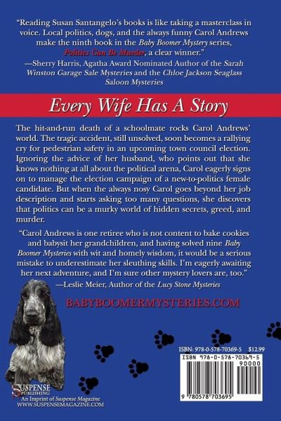 The hit-and-run death of a schoolmate rocks Carol Andrews' world. The tragic accident, still unsolved, soon becomes a rallying cry for pedestrian safety in an upcoming town council election. Ignoring the advice of her husband, who points out that she knows nothing at all about the political arena, Carol eagerly signs on to manage the election campaign of a new-to-politics female candidate. But when the always nosy Carol goes beyond her job description and starts asking too many questions, she discovers that politics can be a murky world of hidden secrets, greed, and murder.