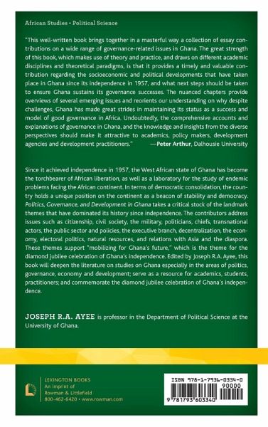 This book explores the politics, governance, and development in Ghana that have attracted the attention and interest of governments, citizens, academics and development partners in the sixty years since Ghana achieved independence. These subjects are also of interest for neighboring African countries.