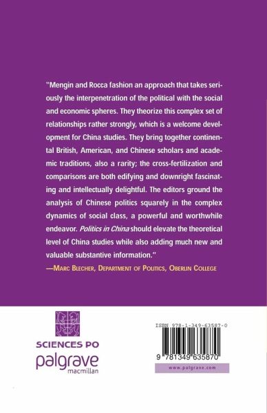'Mengin and Rocca fashion an approach that takes seriously the interpenetration of the political with the social and economic spheres. They theorize this complex set of relationships rather strongly, which is a welcome development for China studies. They bring together continental British, American, and Chinese scholars and academic traditions, also a rarity; the cross-fertilization and comparisons are both edifying and downright fascinating and intellectually delightful. The editors ground the analysis of Chinese politics squarely in the complex dynamics of social class, a powerful and worthwhile endeavor. Politics in China should elevate the theoretical level of China studies while also adding much new and valuable substantive information' - Marc Blecher, Department of Politics, Oberlin College
