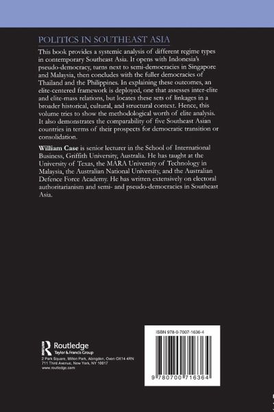 This volume provides an introduction to the politics of the five key southeast Asian states - Malaysia, Singapore, Indonesia, Thailand and the Philippines - and is intended as a textbook for undergraduate and graduate students taking courses on this subject. Using a comparative politics and political economy perspective, the author focuses in particular on the degree of democracy in the five countries, arguing that in all the countries considered democracy is, to varying degrees, imperfect. The book synthesises a wide range of scholarship, and presents the material in a concise and accessible way.