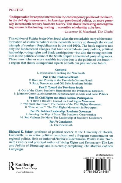 Chapter 1 Introduction: Seeking the New South Part 1 The Traditional South Chapter 2 Race and Poverty in the Twentieth-Century South Chapter 3 Race, Democrats, and Old Style Southern Politics Part 2 Toward the Two-Party South: The Rise of Southern Republicanism Chapter 4 Out of the Closet: Southern Republicans and Presidential Elections Chapter 5 Johnnies Come Lately: Southern Republicanism in State and Local Politics Part 3 Civil Rights and Black Political Participation in the South Chapter 6 "I Have a Dream": Toward the Civil Rights Movement Chapter 7 "We Shall Overcome": The Politics of the Civil Rights Movement Chapter 8 "Free at Last"?: The Civil Rights Movement in Retrospect Part 4 Political Leadership: Southern Governors Chapter 9 Steering the Ship of State: The Southern Governorship Chapter 10 Red Galluses No More: The Leadership of Southern Governors Part 5 Conclusion Chapter 11 The New South