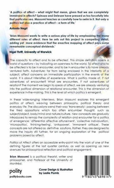 Politics of Affect offers an accessible entry-point into the work of one of the defining figures of the last quarter century, as well as opening up new avenues for philosophical reflection and political engagement.