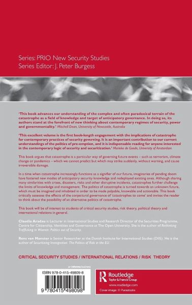 'This excellent volume is the first book-length engagement with the implications of catastrophe for contemporary practices of security governing. It is an important contribution to our current understandings of the politics of preemption, and it is indispensable reading for anyone interested in the contemporary logic of security and securitization.' - Mariek de Goede, University of Amsterdam