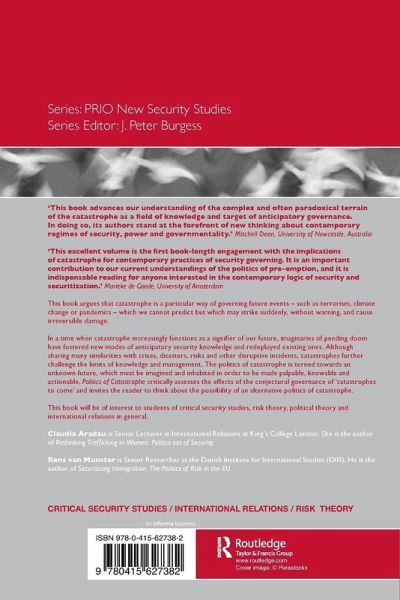 'This excellent volume is the first book-length engagement with the implications of catastrophe for contemporary practices of security governing. It is an important contribution to our current understandings of the politics of preemption, and it is indispensable reading for anyone interested in the contemporary logic of security and securitization.' - Mariek de Goede, University of Amsterdam