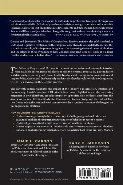 The Politics of Congressional Elections is the most authoritative and accessible introduction available on the topic. By pairing original research with fundamental concepts of representation and responsibility, Carson and Jacobson help students develop the tools to evaluate representative government and their own role in the electoral process.