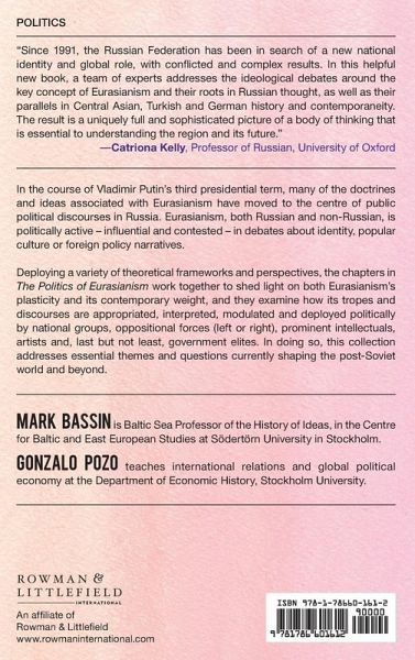 Introduction, Mark Bassin & Gonzalo Pozo / Part I: Eurasianism, Nationalism and Ideology / 1. Defining the 'True' Nationalism: Russian Ethnic Nationalists vs. Eurasianists, Igor Torbakov / 2. 'What is more important: Blood or Soil?' Rasologiia contra Eurasianism, Mark Bassin / 3. Geopolitical Imagination and Popular Geopolitics, between the Eurasian Union and Russkii Mir, Irina Kotkina / Part II: The Cultural Politics of Eurasianism / 4. The Eurasian Symphony: Geopolitics and Utopia in Post-Soviet Alternative History, Mikhail Suslov / 5. Genghis Khan, the Golden Horde and Neo-Eurasianism in Russian Feature Films, Christine Engel / 6. Empires of the Mind: Eurasianism and Alternative History in Post-Soviet Russia, Konstantin Sheiko and Stephen Brown / Part III: "Project Eurasia" and Russia's Foreign Policy / 7. When Eurasia looks East: Is Eurasianism Sinophile or Sinophobe?, Marlene Laruelle / 8. Eurasianism in Russian Foreign Policy? The Case of the Eurasian Economic Union, Gonzalo Pozo / 9. Aleksander Dugin