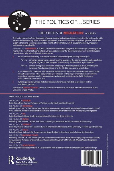 The Politics of Migration presents key information and analysis of this major topic, currently to be found at the forefront of world affairs. This unbiased survey is of interest to students, academics, business people and general researchers. The first section consists of essays written by a variety of academic and other experts on migration topics, including analysis of the economics of migration policies, irregular migration, refugees, the internally displaced and asylum seekers. Following the essays are regional overviews, analyzing in depth migration in areas including the Americas, Asia, Europe, Africa, the Mediterranean and the Middle East. The second section is an A-Z glossary for which contains explanations of the most important terms used in migration discourse, while also providing information on the major international conventions regarding migration, and on organizations and research institutes in the field. Where appropriate, maps, statistical tables and charts are included, as are lists of further reading suggestions.