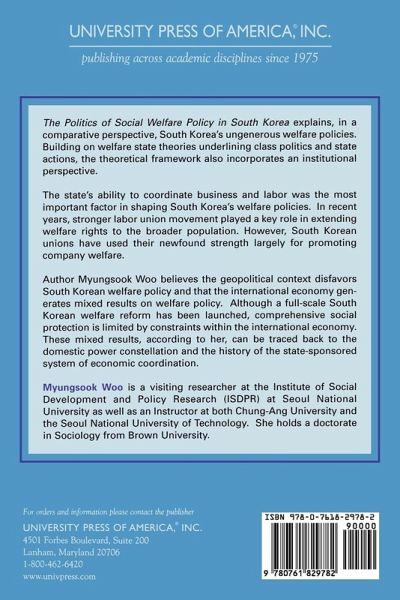 The book will be of interest to students of international social policy, globalization and of South Korea, as well as political scientists, drawing as it does on a detailed and distinctive study of the political nature of social welfare... What is particularly interesting in this study is the way the writer works with political aspects of social welfare reform and the predominance of the market economy, in particular the large industrial companies... This is a fascinating study of class power, developing democracy, dramatic economic development and crisis. -- Prof. Liz Ross, University of Birmingham Social Policy, Vol. 35/3: 2006