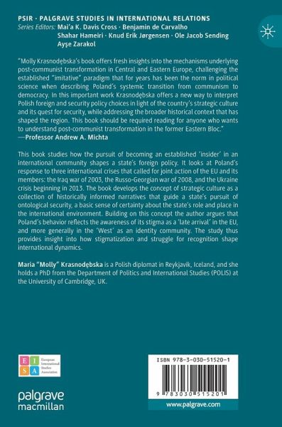 This book studies how the pursuit of becoming an established 'insider' in an international community shapes a state's foreign policy. It looks at Poland's response to three international crises that called for joint action of the EU and its members: the Iraq war of 2003, the Russo-Georgian war of 2008, and the Ukraine crisis beginning in 2013. The book develops the concept of strategic culture as a collection of historically informed narratives that guide a state's pursuit of ontological security, a basic sense of certainty about the state's role and place in the international environment. Building on this concept the author argues that Poland's behavior reflects the awareness of its stigma as a 'late arrival' in the EU, and more generally in the'West' as an identity community. The study thus provides insight into how stigmatization and struggle for recognition shape international dynamics.