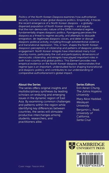 "Politics of the North Korean Diaspora examines how authoritarian security concerns shape global diaspora politics. Empirically, it traces the recent emergence of a North Korean diaspora - a globally-dispersed population of North Korean âemigrâes - and argues that the non-democratic nature of the DPRK homeland regime fundamentally shapes diasporic politics. Pyongyang perceives the diaspora as a threat to regime security, and attempts to dissuade emigration, de-legitimate diasporic voices, and deter or disrupt diasporic political activity, including throughn o and transnational repression. This, in turn, shapes the North Korean diaspora's perceptions of citizenship and patterns of diasporic political engagement: North Korean âemigrâes have internalized many host country norms, particularly the civil and participatory dimensions of democratic citizenship, and âemigrâes have played important roles in both host-country and global politics. This Element provides new empirical evidence on the North Korean diaspora; demonstrates that regime type is an important, understudied factor shaping transnational and diasporic politics; and contributes to our understanding of comparative authoritarianism's global impact"--