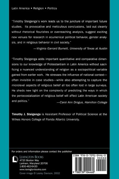 Chapter 1 Preface: The Significance of Religion in Political Life Chapter 2 Introduction: Invasion of the Sects or Heralds of the New Reformation? Protestants and Politics in Latin America Chapter 3 Catholics and Protestants in Central America: Understanding Context and Explaining Evangelical Growth Chapter 4 The Politics of Religious Affiliation: Testing a Model Chapter 5 Guatemala: From Missionaries to Presidents in Central America's Most Protestant Nation. Chapter 6 Costa Rica: Religion and Politics in a Context of Democratic Reform Chapter 7 The Religious Politics of Gender: Orthodoxy, Patriarchy and Machismo. Chapter 8 Conclusion: The Politics of the Spirit: The Political Implications of Pentecostalized Religion