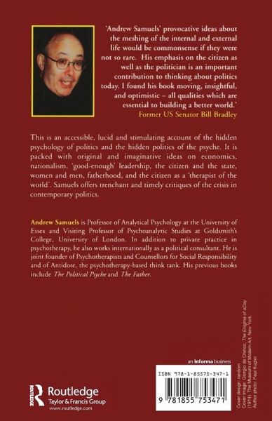 This is an accessible, lucid and stimulating account of the hidden psychology of politics and the hidden politics of the psyche. It is packed with original and imaginative ideas on economics, nationalism, "good-enough" leadership, the citizen and the state, women and men, fatherhood, and the citizen as a "therapist of the world".