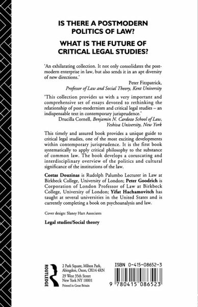 Costas Douzinas is Rudolph Palumbo Lecturer in Law at Birkbeck College, University of London, Peter Goodrich is Corporation of London Professor of Law at Birkbeck College, University of London, Yifat Hachamovitch has taught at several universities in the United States and is currently completing a book on psychoanalysis and law.