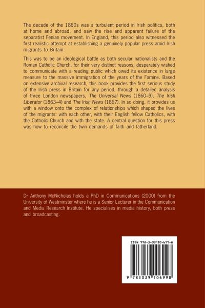 This was to be an ideological battle as both secular nationalists and the Roman Catholic Church, for their very distinct reasons, desperately wished to communicate with a reading public which owed its existence in large measure to the massive immigration of the years of the Famine. Based on extensive archival research, this book provides the first serious study of the Irish press in Britain for any period, through a detailed analysis of three London newspapers, The Universal News (1860-9), The Irish Liberator (1863-4) and The Irish News (1867). In so doing, it provides us with a window onto the complex of relationships which shaped the lives of the migrants: with each other, with their English fellow Catholics, with the Catholic Church and with the state. A central question for this press was how to reconcile the twin demands of faith and fatherland.