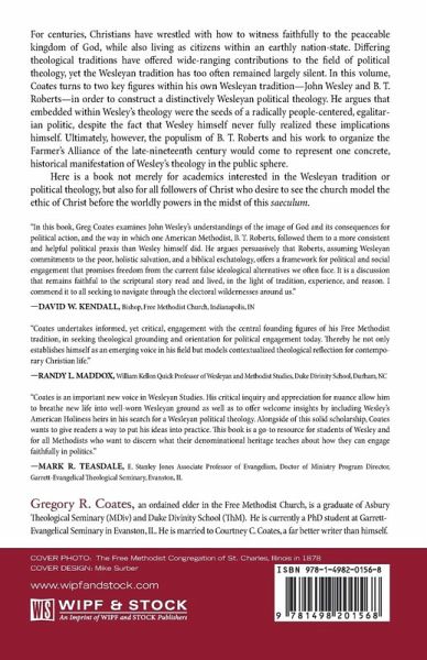 For centuries, Christians have wrestled with how to witness faithfully to the peaceable kingdom of God, while also living as citizens within an earthly nation-state. Differing theological traditions have offered wide-ranging contributions to the field of political theology, yet the Wesleyan tradition has too often remained largely silent. In this volume, Coates turns to two key figures within his own Wesleyan tradition--John Wesley and B. T. Roberts--in order to construct a distinctively Wesleyan political theology. He argues that embedded within Wesley's theology were the seeds of a radically people-centered, egalitarian politic, despite the fact that Wesley himself never fully realized these implications himself. Ultimately, however, the populism of B. T. Roberts and his work to organize the Farmer's Alliance of the late-nineteenth century would come to represent one concrete, historical manifestation of Wesley's theology in the public sphere. Here is a book not merely for academics interested in the Wesleyan tradition or political theology, but also for all followers of Christ who desire to see the church model the ethic of Christ before the worldly powers in the midst of this saeculum.