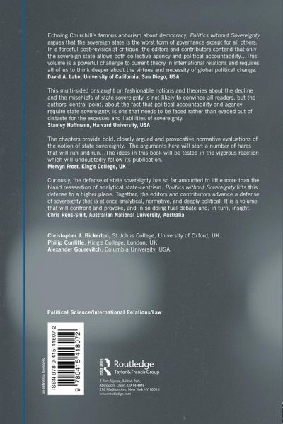 Written by leading scholars, this volume challenges the recent trend in international relations scholarship - the common antipathy to sovereignty. The classical doctrine of sovereignty is widely seen as totalitarian, producing external aggression and internal repression. Political leaders and opinion-makers throughout the world claim that the sovereign state is a barrier to efficient global governance and the protection of human rights. Two central claims are advanced in this book. First, that the sovereign state is being undermined not by the pressures of globalization but by a diminished sense of political possibility. Second, it demonstrates that those who deny the relevance of sovereignty have failed to offer superior alternatives to the sovereign state. Sovereignty remains the best institution to establish clear lines of political authority and accountability, preserving the idea that people shape collectively their own destiny. The authors claim that this positive idea of sovereignty as self-determination remains integral to politics both at the domestic and international levels. Politics Without Sovereignty will be of great interest to students and scholars of political science, international relations, security studies, international law, development and European studies.