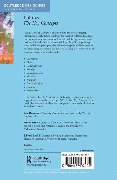 In an accessible A-Z format with helpful cross-referencing and suggestions for further reading, Politics: The Key Concepts is an invaluable reference for all students of politics, international relations and related courses.