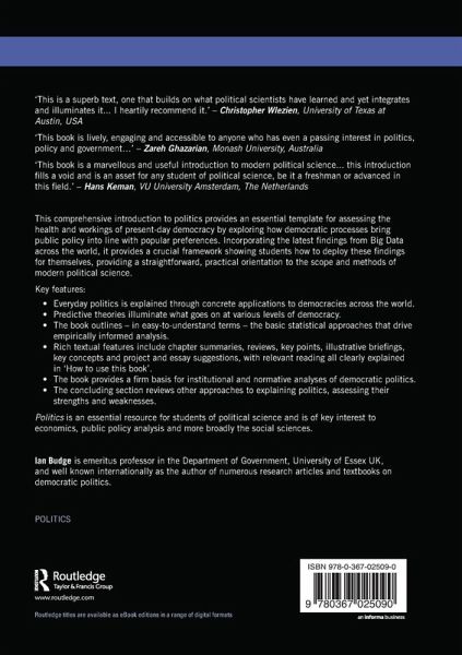 "This book is a marvellous and useful introduction to modern political science. Professor Ian Budge has produced a fresh approach to study and analyse 'Democratic Politics'. By means of 'predictive theory' the student can understand and explain the political process in full. I am convinced that this introduction fills a void and is an asset for any student of political science, be it a freshman or advanced in this field." - Hans Keman, VU University Amsterdam, The Netherlands.