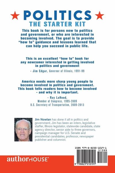 This book is for persons new to politics and government, or who are interested in becoming involved. The goal is to provide "how to" guidance and lessons learned that can help you succeed in public life. This is a "starter kit." I draw in part on my own career over half a century in Illinois and D.C.-as an intern; legislative staffer; state legislator; statewide candidate; senior aide to three governors of Illinois; state agency director on three occasions; campaign manager for a U.S. senator (successful) and presidential candidate (interesting); lobbyist; newspaper columnist, and professor (see bio sketch at back).