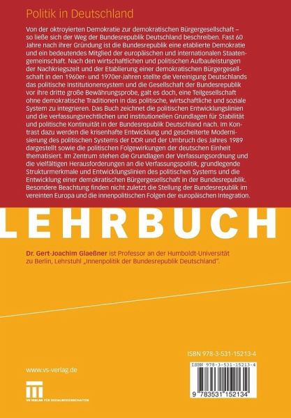 "Das umfangreiche Lehrbuch [...] hat sich als Lehr- und Handbuch bewährt, weil es die für das politikwissenschaftliche Grundstudium wichtigen Informationen zum politischen System der Bundesrepublik Deutschland enthält. Hinzu kommt, dass das Buch in einer verständlichen Sprache geschrieben und mit zahlreichen Tabellen, sowie mit einem Sach- und Personenregister und nicht zuletzt mit einer aktuellen Bibliographie zur 'Politik in Deutschland' versehen ist." Forum Politikunterricht, 01/2008