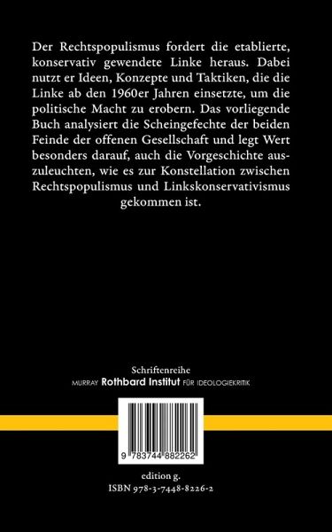 Der Rechtspopulismus fordert die etablierte, konservativ gewendete Linke heraus. Dabei nutzt er Ideen, Konzepte und Taktiken, die die Linke ab den 1960er Jahren einsetzte, um die politische Macht zu erobern. Das vorliegende Buch analysiert die Scheingefechte der beiden Feinde der offenen Gesellschaft und legt Wert besonders darauf, auch die Vorgeschichte auszuleuchten, wie es zur Konstellation zwischen Rechtspopulismus und Linkskonservativismus gekommen ist.