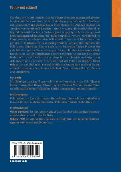 Die deutsche Politik zerreibt sich im Spagat zwischen zunehmend protestbereiten Wählern vor Ort und der Anforderung, hyperkomplexe Probleme auf europäischer und globaler Ebene lösen zu müssen. Dadurch erodiert das Ansehen von Politik und Parteien - eine Bewegung, die letztlich demokratiegefährdend ist. Die in der Nachkriegszeit ausgeprägten Mitwirkungs- und Entscheidungsmechanismen der Bundesrepublik werden zunehmend in Frage gestellt; sie scheinen den Wählerbedürfnissen und Herausforderungen des 21. Jahrhunderts nicht mehr gerecht zu werden. Das Ergebnis: die Politik wird abgehängt. Dieses Buch ist ein leidenschaftliches Plädoyer für gute Politik - und die Voraussetzungen, die man für ihre Renaissance schaffen muss. In dreizehn streitbaren Thesen benennen Kenner des politischen Berlins offen die Schwächen des bundespolitischen Betriebs und zeigen, was sich ändern muss, um den Ansehensverlust der Politik zu stoppen. Dabei richtet sich der Blick nicht nur auf Politiker selbst, sondern auch auf die anderen Steuermänner des "Raumschiffs Berlin": Journalisten, Beamte, Berater und Mitarbeiter.