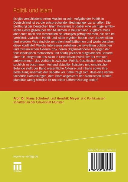 Es gibt verschiedene Arten Muslim zu sein. Aufgabe der Politik in Deutschland ist es, die entsprechenden Bedingungen zu schaffen. Die Eröffnung der Deutschen Islam Konferenz ist dabei eine wichtige symbolische Geste gegenüber den Muslimen in Deutschland. Zugleich muss aber auch nach den materiellen Neuerungen gefragt werden, die sich im Verhältnis zwischen Politik und Islam ergeben haben bzw. derzeit diskutiert werden. Was sind die zentralen Konfliktthemen und worin bestehen diese Konflikte? Welche Interessen verfolgen die jeweiligen politischen und muslimischen Akteure bzw. deren Organisationen? Entgegen der teils ideologisch motivierten und häufig politisch aufgeladenen Debatte über die Integration des Islam in Deutschland wird hier der Versuch unternommen, dass Verhältnis zwischen Politik, Gesellschaft und Islam sachlich zu bestimmen. Anhand aktueller Beispiele und empirischer Befunde stellt der Band wesentliche Akteure und Inhalte sowie ihre Bedeutung innerhalb der Debatte vor. Dabei zeigt sich, dass eine vereinfachende Darstellungen 'des' Islam angesichts der islamischen Binnenpluralität wenig hilfreich ist und einer Differenzierung bedarf.
