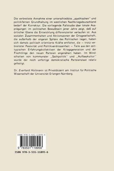 Die verbreitete Annahme einer unterschiedslos "apathischen" und politikfernen Grundhaltung im westlichen Nachkriegsdeutschland bedarf der Korrektur. Die Fallstudien über lokale Ausprägungen im politischen Bewußtsein jener Jahre zeigt, daß auf örtlicher Ebene die Entwicklungen differenzierter verlaufen.