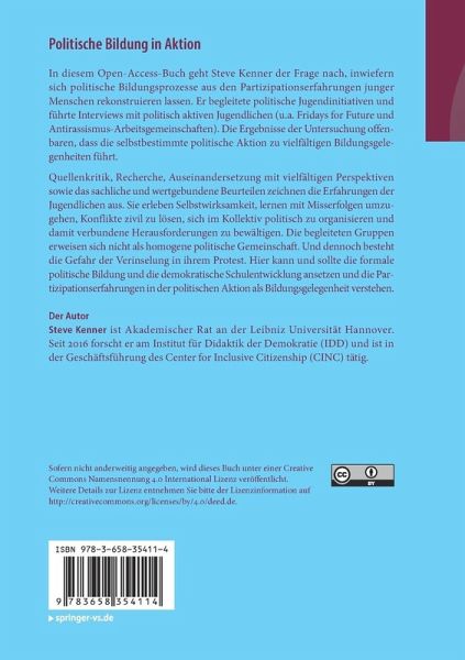 In diesem Open-Access-Buch geht Steve Kenner der Frage nach, inwiefern sich politische Bildungsprozesse aus den Partizipationserfahrungen junger Menschen rekonstruieren lassen. Er begleitete politische Jugendinitiativen und führte Interviews mit politisch aktiven Jugendlichen (u.a. Fridays for Future und Antirassismus-Arbeitsgemeinschaften). Die Ergebnisse der Untersuchung offenbaren, dass die selbstbestimmte politische Aktion zu vielfältigen Bildungsgelegenheiten führt. Quellenkritik, Recherche, Auseinandersetzung mit vielfältigen Perspektiven sowie das sachliche und wertgebundene Beurteilen zeichnen die Erfahrungen der Jugendlichen aus. Sie erleben Selbstwirksamkeit, lernen mit Misserfolgen umzugehen, Konflikte zivil zu lösen, sich im Kollektiv politisch zu organisieren und damit verbundene Herausforderungen zu bewältigen. Die begleiteten Gruppen erweisen sich nicht als homogene politische Gemeinschaft. Und dennoch besteht die Gefahr der Verinselung in ihrem Protest. Hier kann und sollte die formale politische Bildung und die demokratische Schulentwicklung ansetzen und die Partizipationserfahrungen in der politischen Aktion als Bildungsgelegenheit verstehen.