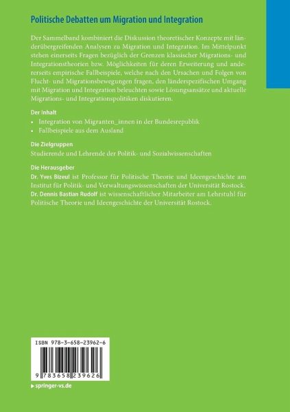 Der Sammelband kombiniert die Diskussion theoretischer Konzepte mit länderübergreifenden Analysen zu Migration und Integration. Im Mittelpunkt stehen einerseits Fragen bezüglich der Grenzen klassischer Migrations- und Integrationstheorien bzw. Möglichkeiten für deren Erweiterung und andererseits empirische Fallbeispiele, welche nach den Ursachen und Folgen von Flucht- und Migrationsbewegungen fragen, den länderspezifischen Umgang mit Migration und Integration beleuchten sowie Lösungsansätze und aktuelle Migrations- und Integrationspolitiken diskutieren.