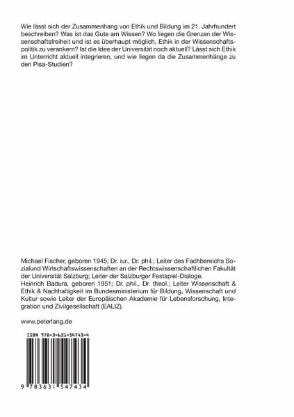 Aus dem Inhalt: Konrad Paul Liessmann: Bildung und Ethik - Oder: Was ist das Gute am Wissen? - Gernot Böhme: Die Wissenschaftsfreiheit und ihre Grenzen - Michaela Strasser: Wissensgesellschaft als Wissenschaftsgesellschaft - Daiva Döring: Wertfreiheit der Wissenschaft und ihre Grenzen - Daniel Bischur: Ethik im Alltag biowissenschaftlicher Forschung: Freiheit und Verantwortung wissenschaftlichen Handelns - Monika Bartiková: Institutionalisierung der Ethik in der Wissenschaftspolitik. Anmerkungen zu ihrer öffentlichen Wahrnehmung - Edgar Morscher: Idee und moralischer Auftrag von Wissenschaft und Universität - Rudolf Mosler: Ist die Idee der Universität noch aktuell? - Andreas Bammer: Die Idee und soziale Verantwortung der Universität - Hans Pechar: Die Diskussion um die PISA-Studie in Österreich. Bildungsethische Aspekte - Jean-Luc Patry: Wer entscheidet, was gute Schule ist? Normen in der Diskussion um PISA - Anton A. Bucher: Ethikunterricht in Österreich: Noch einiges unklar - Walter Seitter: Zivilgesellschaft oder Zivilgemeinschaft? - Emil Brix: Politische Ethik in Zeiten der Zivilgesellschaft - Andrzej Kiepas: Ethik, partizipative Technikbewertung in der europäischen Zivilgesellschaft - Michael Fischer: Kultur als Integrationsfaktor? - Stefan Wally: Ethik, Macht, Sozialdemokratie - Peter Daniel Moser: Kassandra-Paradigma und Leugnung der Gaskammern: Die sogenannte «Auschwitz-Lüge» als Herausforderung an die Wissenschaftsethik - Nicole Horn: Nationalsozialismus als «Zivilisationsbruch».
