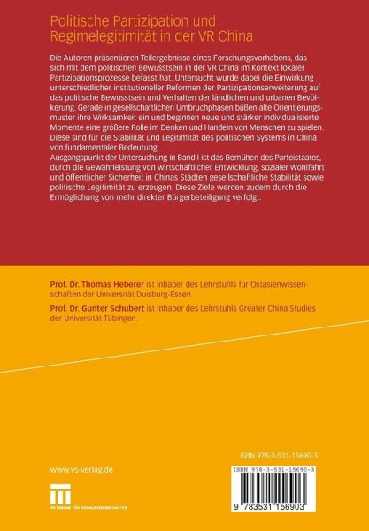 Die Autoren präsentieren Teilergebnisse eines Forschungsvorhabens, das sich mit dem politischen Bewusstsein in der VR China im Kontext lokaler Partizipationsprozesse befasst hat. Untersucht wurde dabei die Einwirkung unterschiedlicher institutioneller Reformen der Partizipationserweiterung auf das politische Bewusstsein und Verhalten der ländlichen und urbanen Bevölkerung. Gerade in gesellschaftlichen Umbruchphasen büßen alte Orientierungsmuster ihre Wirksamkeit ein und beginnen neue und stärker individualisierte Momente eine größere Rolle im Denken und Handeln von Menschen zu spielen. Diese sind für die Stabilität und Legitimität des politischen Systems in China von fundamentaler Bedeutung.