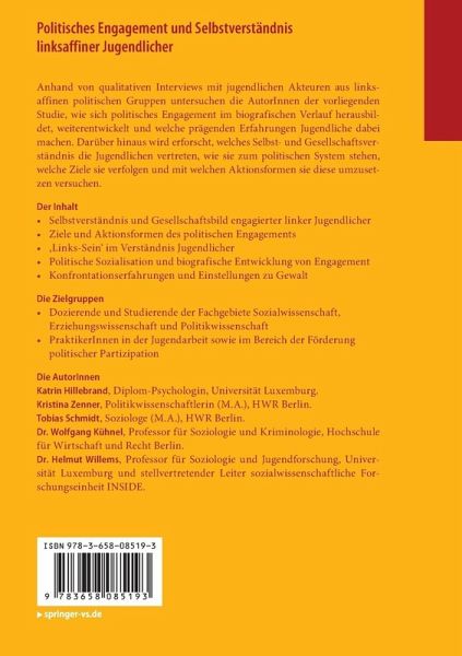 Anhand von 35 qualitativen Interviews mit jugendlichen Akteuren aus linksaffinen politischen Gruppen untersucht diese Studie, wie sich politisches Engagement im biografischen Verlauf herausbildet, weiterentwickelt und welche prägenden Erfahrungen Jugendliche dabei machen. Darüber hinaus wird erforscht, welches Selbst- und Gesellschaftsverständnis die Jugendlichen vertreten, wie sie zum politischen System stehen, welche Ziele sie verfolgen und mit welchen Aktionsformen sie diese umzusetzen versuchen.