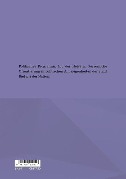 Politisches Programm. Lob der Helvetia. Persönliche Orientierung in politischen Angelegenheiten der Stadt Biel wie der Nation.