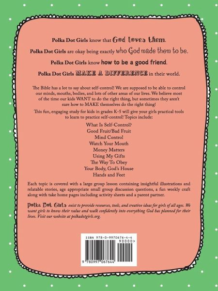 The Bible has a lot to say about Self Control! We are supposed to be able to control our minds, mouths, bodies and lots of other areas of our lives. We believe MOST of the time kids want to do the right thing, but sometimes they aren\'t sure how to MAKE themselves do the right thing! This fun, engaging study for kids grades K-5 will give your girls practical tools to learn to practice self control. Topics include: · What is Self Control? · Good Fruit/Bad Fruit · Mind Control · Watch Your Mouth! · Money Matters Using My Gifts · The Way to Obey · Your Body, God\'s House · Hands and Feet