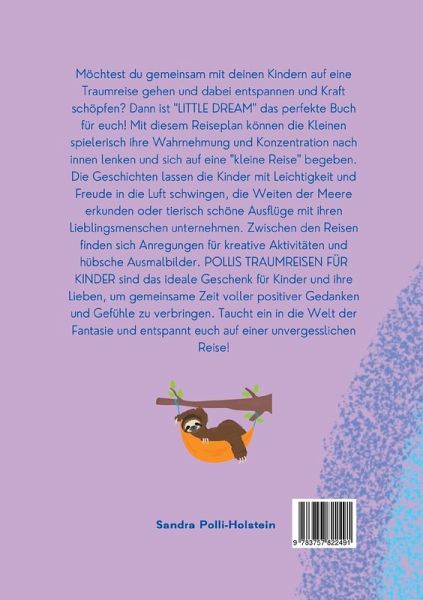 Möchtest du gemeinsam mit deinen Kindern auf eine Traumreise gehen und dabei entspannen und Kraft schöpfen? Dann ist "LITTLE DREAM" das perfekte Buch für euch! Mit diesem Reiseplan können die Kleinen spielerisch ihre Wahrnehmung und Konzentration nach innen lenken und sich auf eine "kleine Reise" begeben. Die Geschichten lassen die Kinder mit Leichtigkeit und Freude in die Luft schwingen, die Weiten der Meere erkunden oder tierisch schöne Ausflüge mit ihren Lieblingsmenschen unternehmen. Zwischen den Reisen finden sich Anregungen für kreative Aktivitäten und hübsche Ausmalbilder. POLLIS TRAUMREISEN FÜR KINDER sind das ideale Geschenk für Kinder und ihre Lieben, um gemeinsame Zeit voller positiver Gedanken und Gefühle zu verbringen. Taucht ein in die Welt der Fantasie und entspannt euch auf einer unvergesslichen Reise!