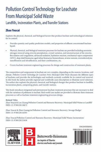 Pollution Control Technology for Leachate from Municipal Solid Waste explores the physical, chemical and biological factors that produce leachate and technological solutions for its control. The book introduces the integrated and pre-treatment leachate treatment processes that are necessary to deal with the variations of pollutants in leachate. Real world case-studies are provided to illustrate these treatment processes, along with leachate treatment engineering process design and the construction of municipal solid waste incinerator power plants. This book will be of particular interest to Civil, Chemical and Environmental Engineers, but will also be ideal for Environmental Scientists.