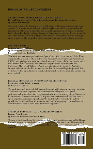 This may be the book to guide advocates and citizens through our complex environmental laws. . . . Not a critique of the pollution laws, this is a detailed summary of their provisions, such as who is responsible for administration; criteria and schedules to be met; citizens' right to bring suit; and the like. Not easy reading, it beats hacking through the language of the laws themselves. Library Journal Pollution Law Handbook is a comprehensive yet accessible guide to eight major federal statutes concerned with controlling pollution. Written for attorneys and their corporate clients concerned with environmental matters, the handbook is designed to help the reader fully comprehend both the general intent and the essential provisions of each statute--many of which seem convoluted, confusing, and unduly complex in their original statutory text. The eight statutes selected for inclusion are those which provide the principal authority for regulating air, water, and land pollution, and toxic waste.