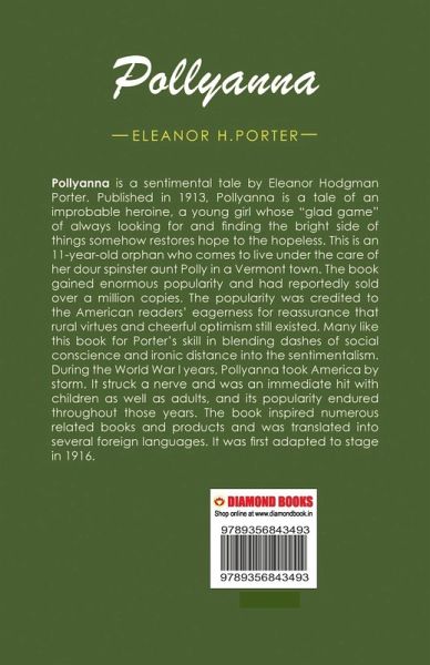 Pollyanna is a sentimental tale by Eleanor Hodgman Porter. Published in 1913, Pollyanna is a tale of an improbable heroine, a young girl whose ?glad game? of always looking for and finding the bright side of things somehow restores hope to the hopeless. This is an 11-year-old orphan who comes to live under the care of her dour spinster aunt Polly in a Vermont town. The book gained enormous popularity and had reportedly sold over a million copies. The popularity was credited to the American readers? eagerness for reassurance that rural virtues and cheerful optimism still existed. Many like this book for Porter?s skill in blending dashes of social conscience and ironic distance into the sentimentalism. During the World War I years, Pollyanna took America by storm. It struck a nerve and was an immediate hit with children as well as adults, and its popularity endured throughout those years. The book inspired numerous related books and products and was translated into several foreign languages. It was first adapted to stage in 1916.