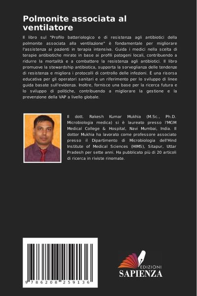 Il libro sul "Profilo batteriologico e di resistenza agli antibiotici della polmonite associata alla ventilazione" è fondamentale per migliorare l'assistenza ai pazienti in terapia intensiva. Guida i medici nella scelta di terapie antibiotiche mirate in base ai profili patogeni locali, contribuendo a ridurre la mortalità e a combattere la resistenza agli antibiotici. Il libro promuove la stewardship antibiotica, supporta la sorveglianza delle tendenze di resistenza e migliora i protocolli di controllo delle infezioni. È una risorsa educativa per gli operatori sanitari e un riferimento per lo sviluppo di linee guida basate sull'evidenza. Inoltre, fornisce una base per la ricerca futura e lo sviluppo di politiche, contribuendo a migliorare la gestione e la prevenzione della VAP a livello globale.