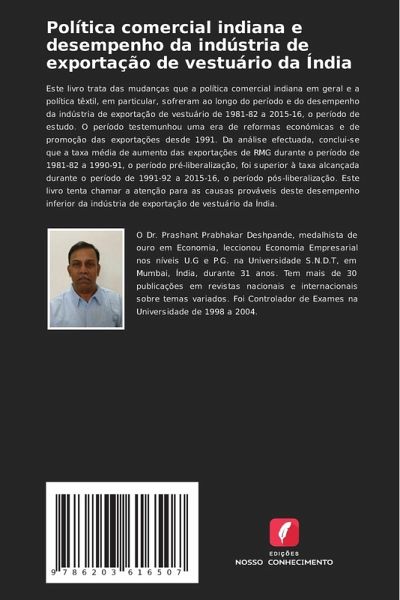 Este livro trata das mudanças que a política comercial indiana em geral e a política têxtil, em particular, sofreram ao longo do período e do desempenho da indústria de exportação de vestuário de 1981-82 a 2015-16, o período de estudo. O período testemunhou uma era de reformas económicas e de promoção das exportações desde 1991. Da análise efectuada, conclui-se que a taxa média de aumento das exportações de RMG durante o período de 1981-82 a 1990-91, o período pré-liberalização, foi superior à taxa alcançada durante o período de 1991-92 a 2015-16, o período pós-liberalização. Este livro tenta chamar a atenção para as causas prováveis deste desempenho inferior da indústria de exportação de vestuário da Índia.