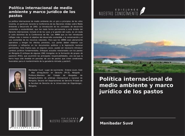 La política internacional de medio ambiente dio un giro a principios de los años noventa, en particular durante la Conferencia de las Naciones Unidas sobre Medio Ambiente y Desarrollo de 1992. La introducción de los conceptos de desarrollo sostenible y sostenibilidad, que han dado forma permanente a este ámbito del Derecho internacional, incluido el de los usos y la gestión del suelo, es sin duda el sello distintivo de la Conferencia de Río. Los AMMA que se han introducido reflejan más o menos el objetivo del desarrollo sostenible y la conservación y el uso sostenible de los recursos naturales. Para que los AMMA sean plenamente operativos y tengan los efectos previstos, sus partes deben elaborar sus principios y reflejarlos en los documentos políticos y la legislación nacional pertinentes. Esto implica que, en algunos casos, puede ser necesario introducir cambios jurídicos fundamentales. Enfoques actuales relacionados con los pastos en Mongolia El enfoque de algunas ONG mongolas es la formación de grupos de pastores (PUG), que asumirán las principales responsabilidades, una vez que la tierra haya sido dividida en parcelas de uso de pastos que creen condiciones favorables para el mantenimiento de la ganadería nómada y pastoril.